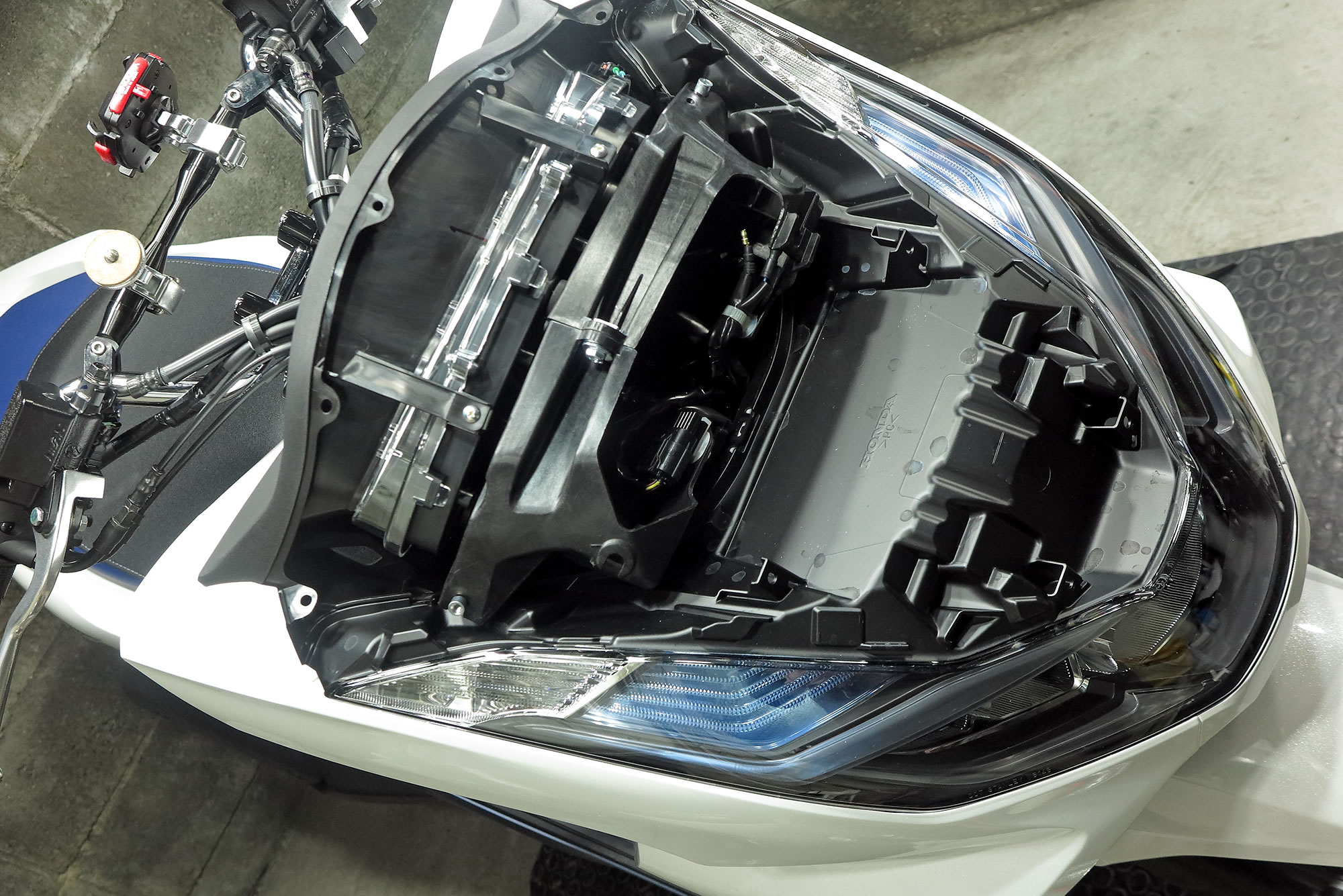 新型pcxはグリップヒーターなどの取付が楽になりました モトスポーツ船橋
